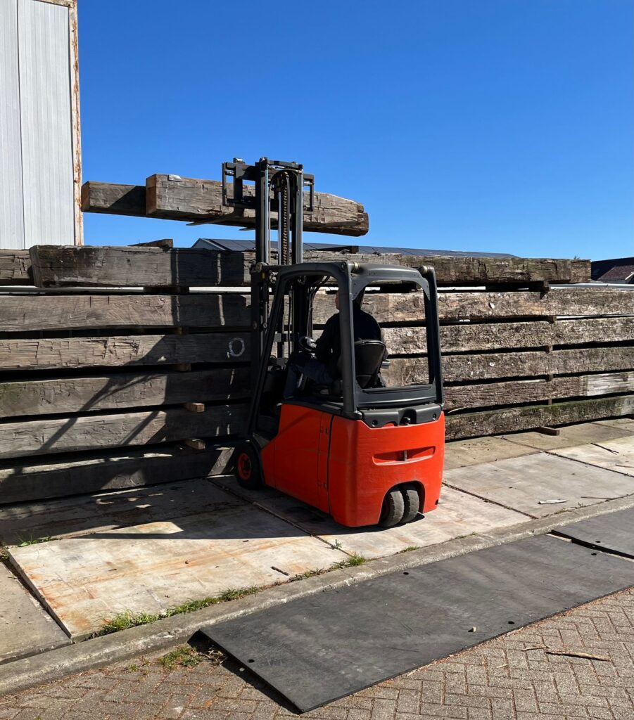 Om planken te krijgen worden de meerpalen eerst uit het water gehaald. De buitenste rand wordt er vanaf gezaagd. Alle planken gaan op een hoop. Wij sorteren de planken uit. Daarna worden ze naar de werkplaats getransporteerd met een vrachtwagen. Zo behouden we de extra lange lengtes van wel 5 meter! En dat is mooi, want wat is er mooier dan een meubel te maken met planken die bij elkaar horen?