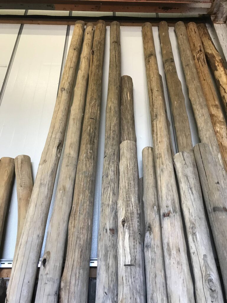 Onze lampen worden van de beste houtsoorten gemaakt; Eucalyptus, Eiken, Kastanje, Teak, Acacia of we gebruiken hout met een verleden. Hout afkomstig uit oude schuren, hooibergen en boerderijen. We maken ook lampen van meerpalen. Dit is een hardhout afkomstig uit de Nederlandse meren en zeeën.